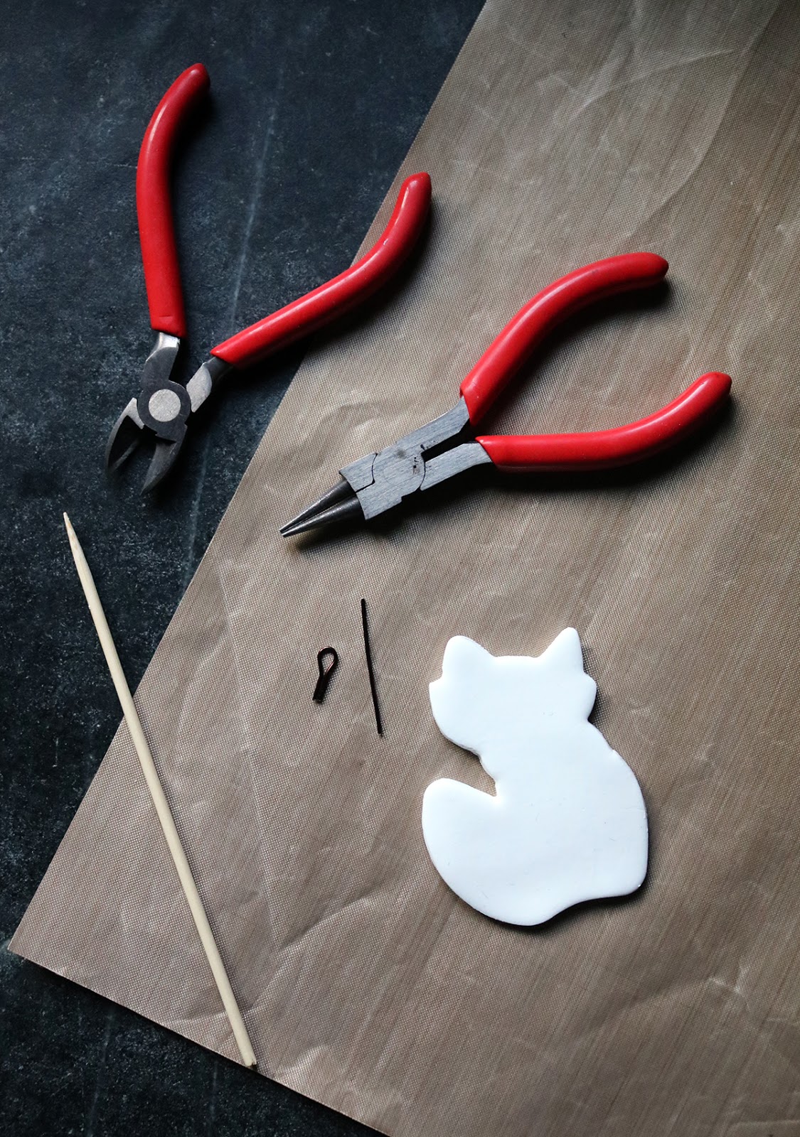 5. Place the clay shapes on a baking sheet lined with parchment paper and bake as per the instructions on the oven baked clay package.