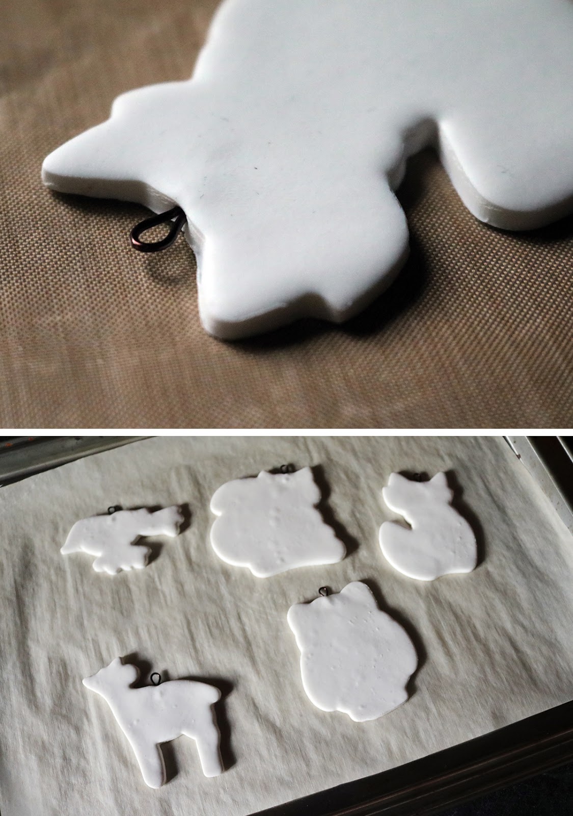 Note: If you don't want to use wire loops to hang the ornaments, add a small hole in the clay before baking using the bamboo skewer.